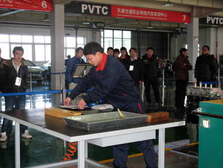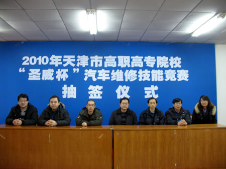 2010年1月25日,天津市高职高专院校“圣威杯”汽车故障诊断与维修技能竞赛在我院汽车实训中心圆满落幕。来自全市七所高职院校的选手参加了本届比赛。我院08级学生葛雅博、侯立波、胡鹏彪、王斐、郭亚峰五名同学组队参赛。