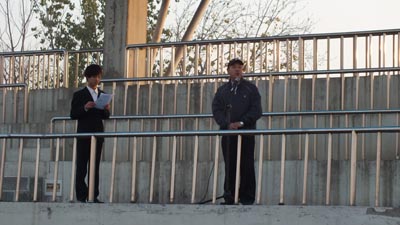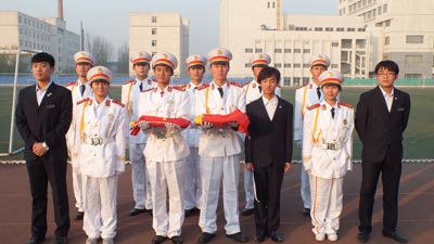 陈长春书记讲话。他指出,要通过升旗活动,达到“扬五星红旗,壮爱国热情”的目的,发奋读书、苦练技能,成人成才。号召大家向在我院《新生的心声》演讲比赛中获得第一名的,我系39岁的新生老大哥王彦民学习,为了实现大学梦想,辞去工作,报考我院,并认真学习,我们每一位同学通过自己的努力,实现自己的梦想,以实际行动表达爱党爱国的情感。
