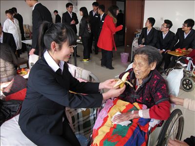 3月9日上午,40余名学生代带着慰问品来到天津市西青区杨柳青敬老院,为那里的老人送去了祝福,同学们的到来使敬老院充满了欢声笑语,同学们有的帮助老人捶肩揉背、有的陪老人聊天、有的为老人们打扫卫生,气氛十分温馨。在同学们即将离开时,养老院的一位奶奶紧紧地握住同学们的手,千叮万嘱要同学们常去看望他们,从她哽咽的话语中,同学们知道奶奶心中的不舍。短短的一天时间结束了,同学们和老人们依依惜别,临别时很多人都留下了不舍的眼泪。