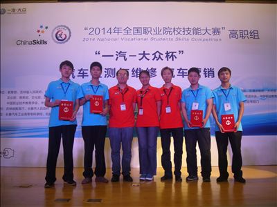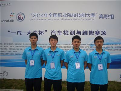 6月20日在长春落幕的2014年全国职业院校技能大赛高职组“一汽-大众杯”汽车检测与维修赛项中,我院汽车工程系2011级汽检专业许亮(博世班)、肖华磊(博世班)、皮凯晓(大众班)、罗凯(奥迪班)四名同学组成的团队共获得了二等奖一项,三等奖三项的优异成绩。其中,“汽车自动变速器拆装与检测”赛项获得团体二等奖,“汽车电气系统检修”赛项、“汽车故障诊断”赛项、“汽车检测与维修综合技能”总成绩分别获得团体三等奖。