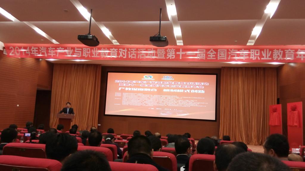 中国汽车工程学会常务副理事长兼秘书长张进华作了题为《汽车产业发展及对职业教育的影响》演讲;中国职业技术教育学会常务副理事长兼秘书长刘占山对深入学习贯彻全国职业教育工作会议精神,加快职业教育改革发展步伐,为实现“中国梦”提供坚实人才保障进行了深入解读。会议同时还邀请了上汽通用五菱汽车股份有限公司等企业和学校,结合自身经验进行产教、校企深度融合的经验交流。