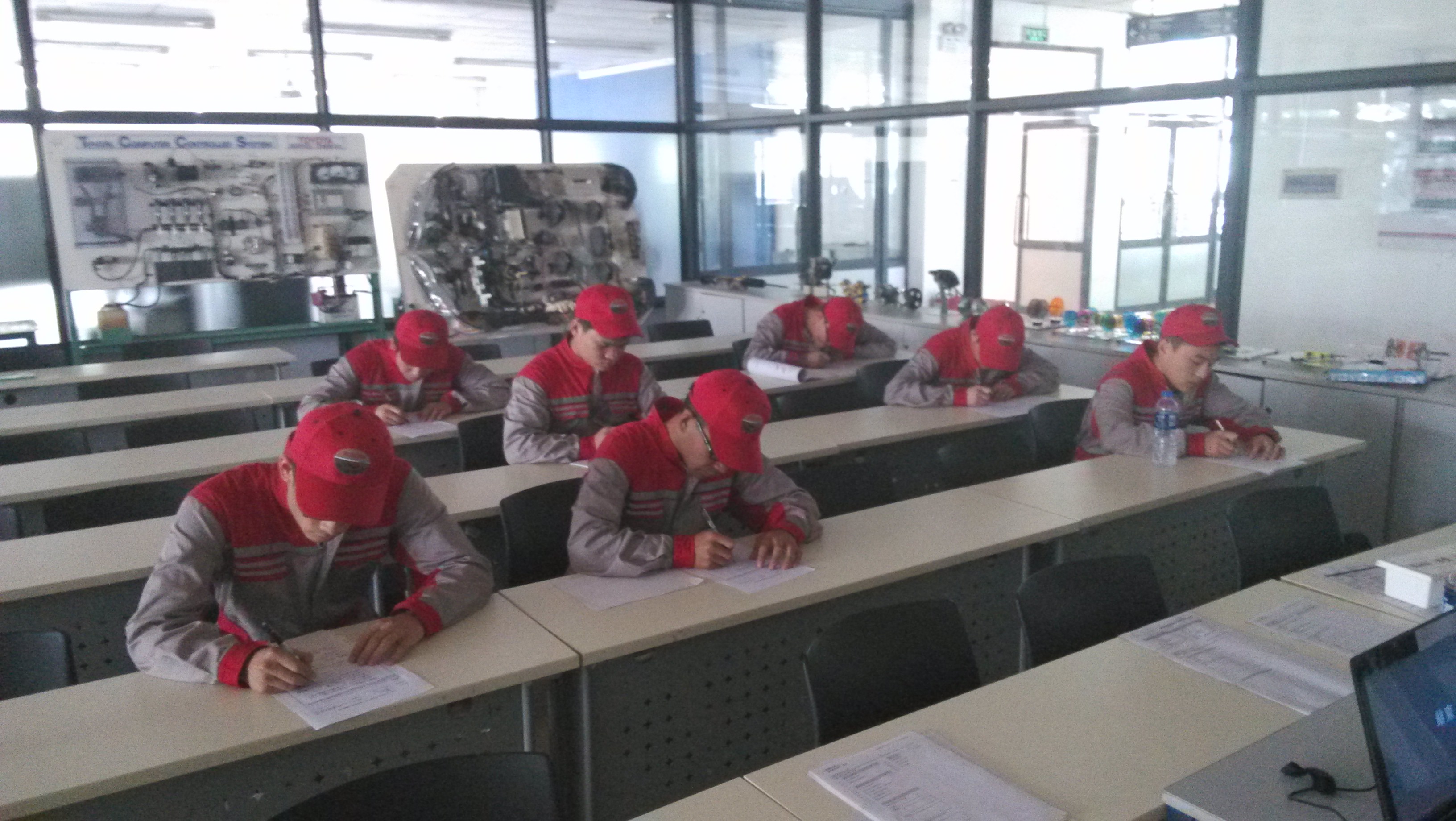 5月29日汽车工程系在实训中心一楼汽车专业实训室举行了2015届丰田T-TEP技术培训项目汽车检测与维修技术专业学生认证考核。本次考核工作根据专业工种不同共分为三个场次依次完成,整个考试过程在丰田T-TEP事务局考核担当和我院汽车专业项目培训教师的主持下顺利完成。
