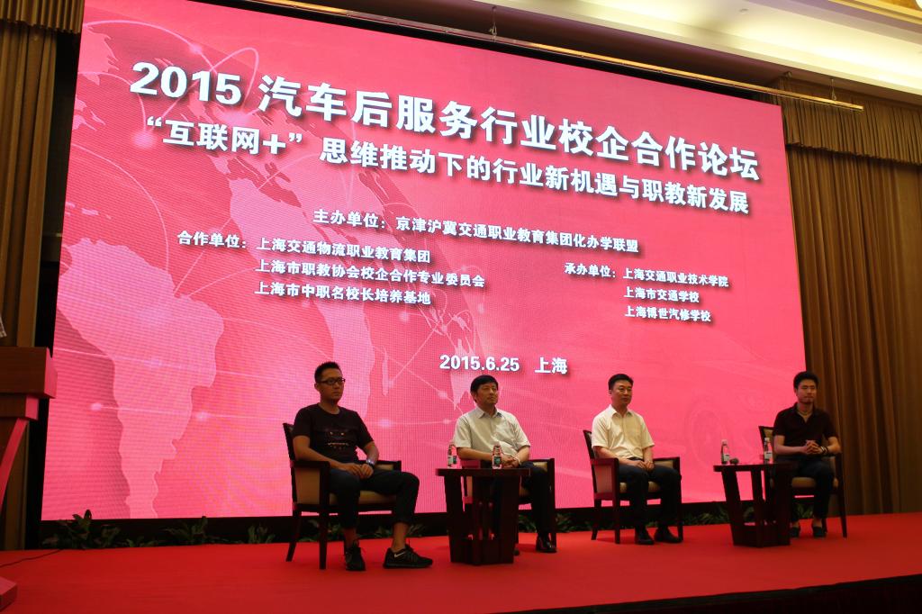 2015年6月25日,由京津沪冀交通职业教育集团化办学联盟主办,上海博世汽修学校、上海交通职业技术学院和上海市交通学校共同承办的“2015汽车后服务行业校企合作论坛”在上海召开。论坛围绕“互联网+思维推动下的行业新机遇和职教新发展”主题,探讨“互联网+”下职业教育和汽车后服务行业如何拥抱互联网进行创新转型,共议职业教育与汽车后服务行业在“互联网+”思维背景下协同发展之路。