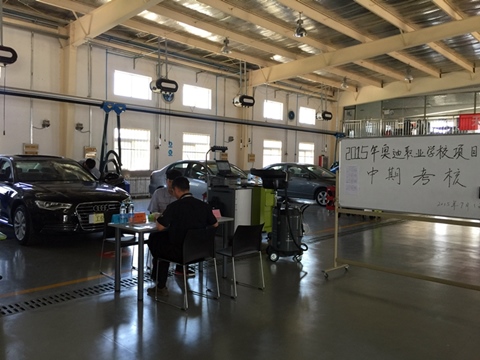 2015年6月24日至7月2日,汽车工程系2012级奥迪订单班毕业考核和2013级奥迪订单班中期考核工作在学院实训中心举行。此次考核邀请了本市各个奥迪经销商的技术经理和培训师进行监考。