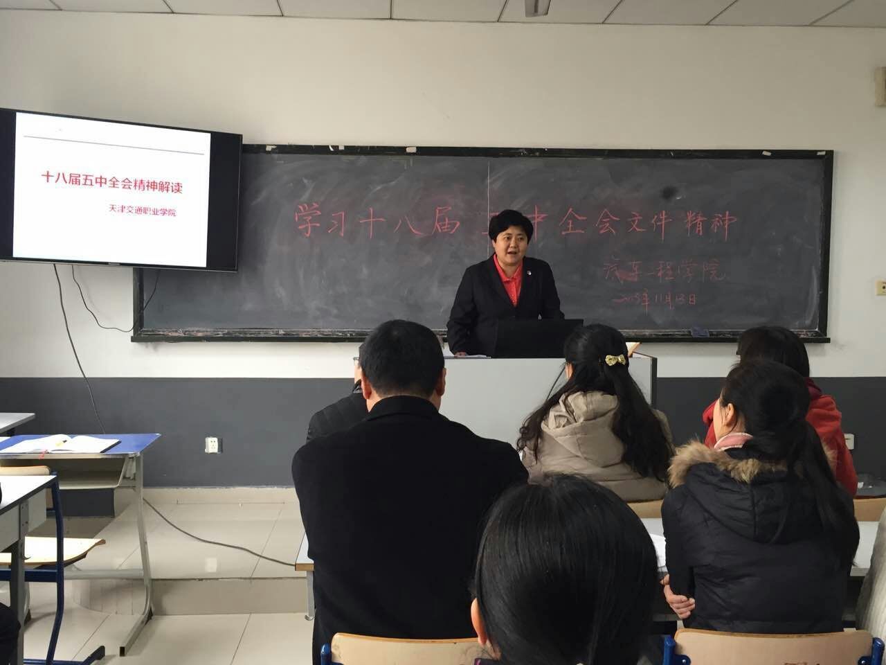 2015年11月13日,汽车工程学院党支部在301教室召开了全体教职工会议,由党支部孙静书记为全体教师导读了党的十八届五中全会精神。