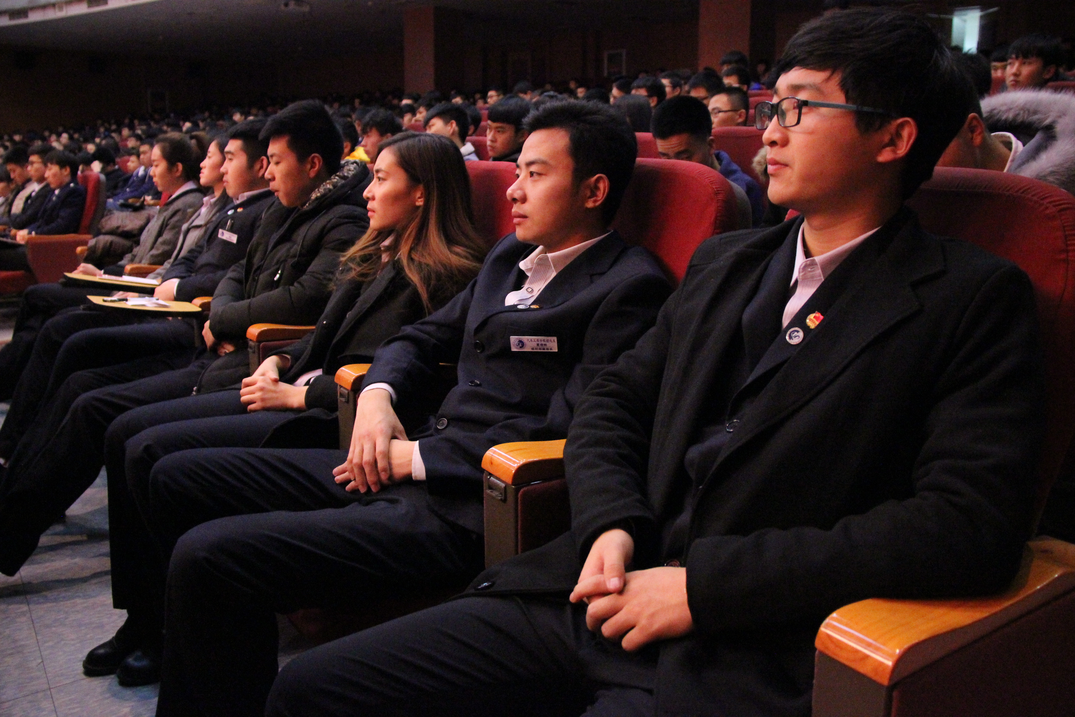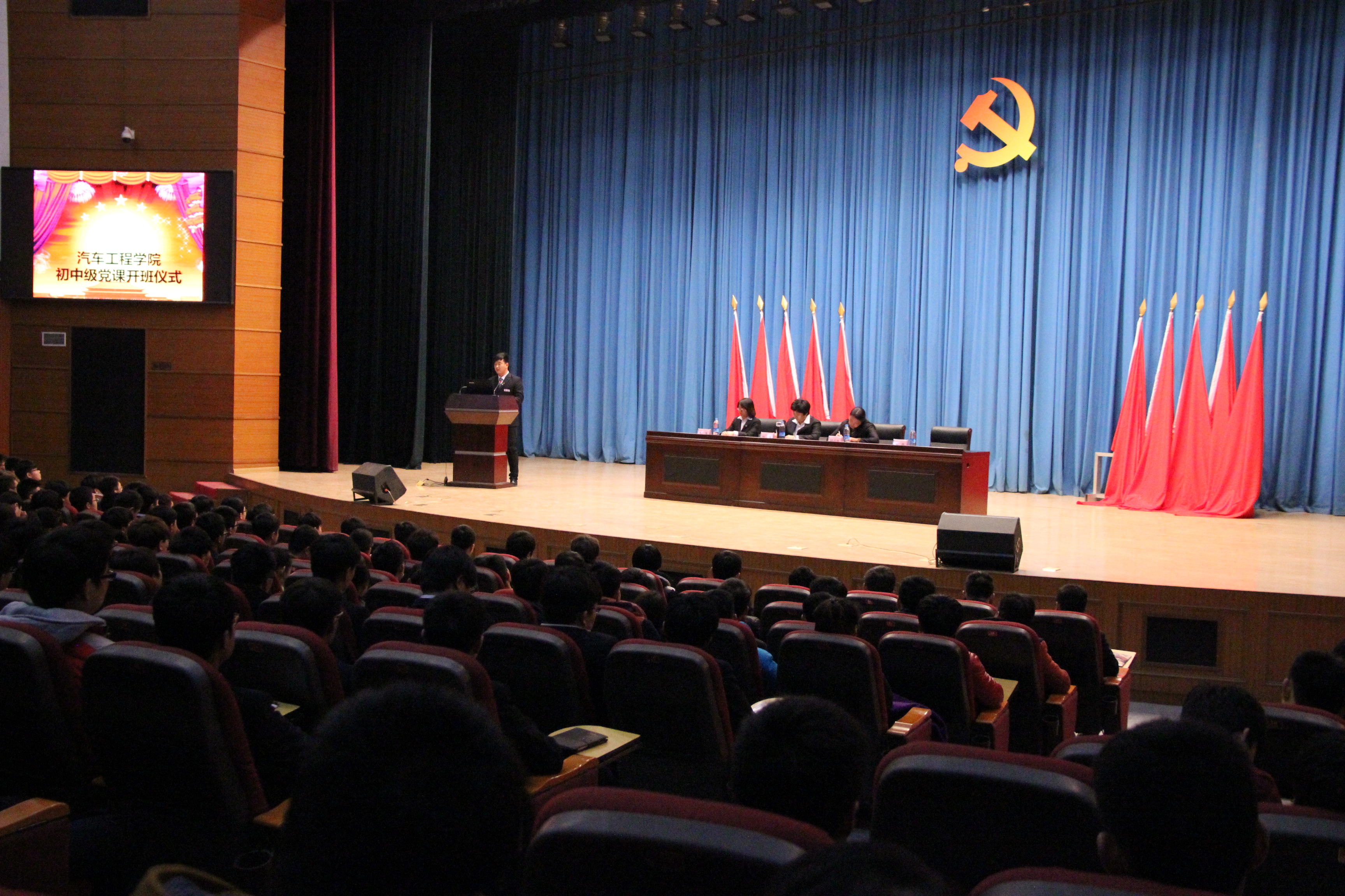 12月4日,汽车工程学院初、中级党课开班仪式在大礼堂举行。学院党委工作部胡月梅部长、分院党支部孙静书记、学工办王旭主任,以及2014级入党积极分子、2015级入党申请人、教师积极分子共计700余人参加了此次开班仪式。开班仪式由王旭主任主持。