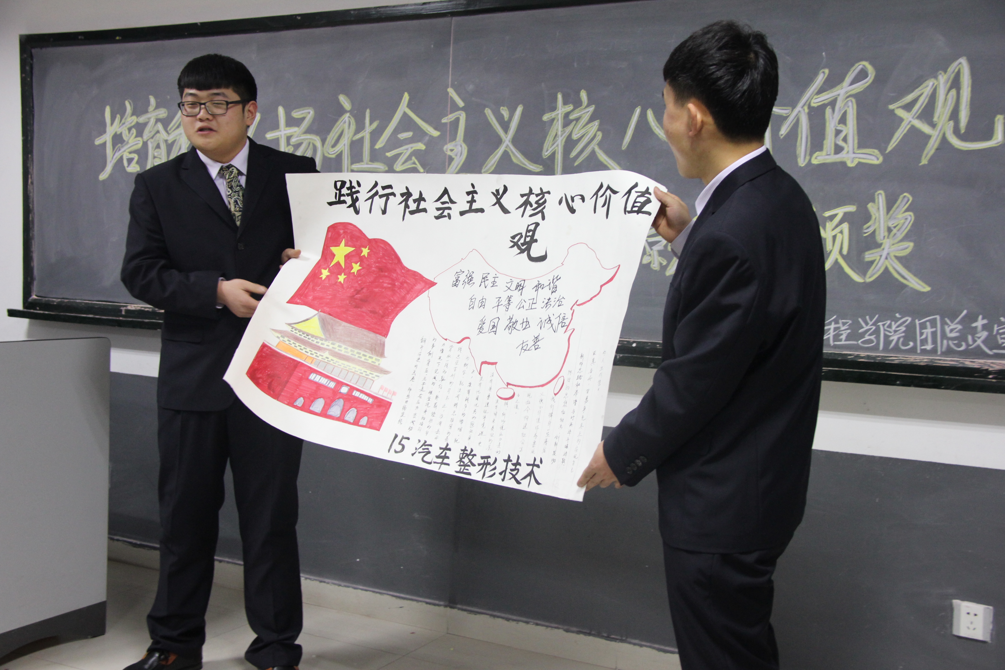为使广大同学们自觉践行、弘扬社会主义核心价值观,1月7日、8日,汽车工程学院组织开展了“培育和弘扬社会主义核心价值观”班级板报评比和主题演讲等系列比赛活动。