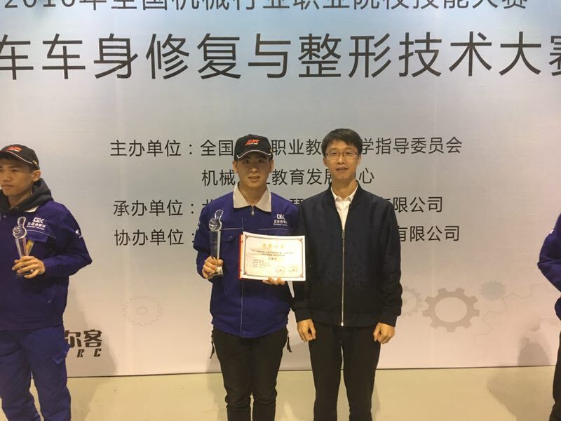 2016年11月2日~3日,由我院汽车工程学院郑印、欧玉君两位教师指导的学生贾浩、张宏强组成的个人参赛团队参加了在北京举办的由全国机械职业教育教学指导委员会和机械工业教育发展中心主办,北京金源诗琴机电设备有限公司承办,北京博尔客汽车科技咨询有限公司协办的“金源诗琴杯”汽车车身修复与整形技术大赛。