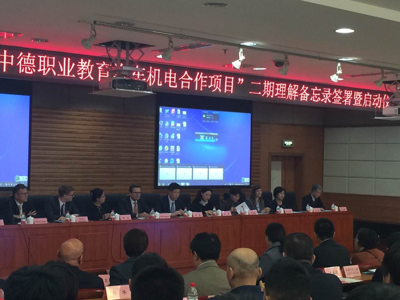 “中德职业教育汽车机电合作项目”二期理解备忘录签署及启动仪式在北京交通运输学院顺利召开,我院于静副院长、汽车工程学院曹向红院长、史懂深老师参加了启动仪式。参加仪式的有教育部国际司李海副司长、各厂商代表、统计大学能力中心、德国国际合作机构代表(GIZ)及25所SGAVE院校的领导及代表。会议开始由李海副司长致辞,在致辞中李海副司长回顾了SGAVE项目在一期中取得的成绩和各院校的努力;并对各院校提出了两点要求,一是要求各SGAVE项目院校把教师的发展、学生的培养、课程的改革逐步引入到我们院校的教学中去,把项目和本地教学进行对接,使SGAVE项目在职业院校起到引领作用;二是要求各个院校充分发挥主观能动性,积极参加项目的各项任务,配合做好项目的本土化工作。会议签署了项目二期的理解备忘录,在项目二期SGAVE项目要逐渐的实现本土化,由德国产商承担的工作逐渐转交给中方来承担,同时在2.0期间要加入了经销商的元素,做到产销结合。并在今后的SGAVE项目中引入车身制造专业和新能源电动车内容,从而使SGAVE项目的拓展范围变得更加广阔。