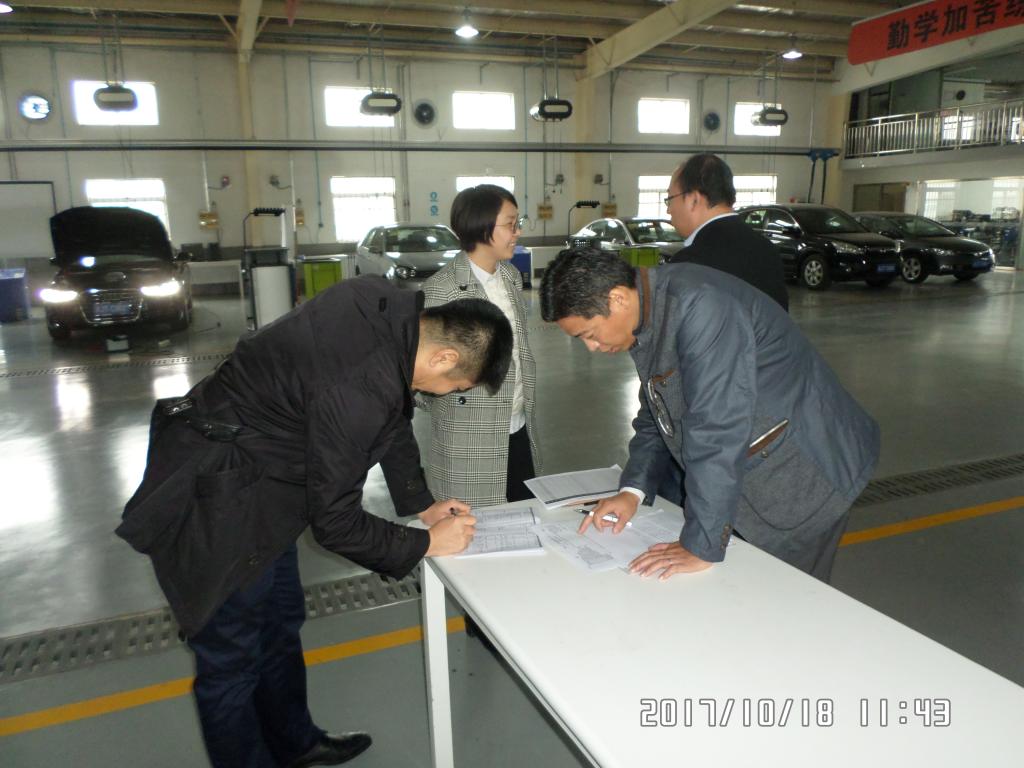2017年10月18日,根据奥迪职业学校项目工作规划安排,奥迪事业部售后培训部张志军老师一行到我院进行现场评估。此次评估,学院领导相当重视,于静副院长带队,汽车工程学院院长曹向红和副院长贾启阳以及奥迪项目负责教师方斌接受了评估检查。在听取方斌老师围绕师资培养、学生培养、招生与就业、专业建设、场地建设、学校对于大众DTMS维护等各项内容,对奥迪职业学校项目的整体工作汇报后,双方进行了充分交流,并对奥迪订单班的教学场地、一汽-大众提供的车辆、工具、备件等进行实地检查。