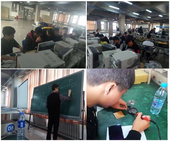参观过程中,本部老师为协会成员们介绍了智能车的研究发展方向,讲解了设计过程中的具体流程,大家表现出了浓厚的兴趣。参观结束后,在实训中心,天职师大的学长就基本电路和矩阵的应用进行了详细的讲解,成员们自己动手进行了电路焊接的练习。在老师和学长的帮助下,成员们大显身手,表现不凡,也为以后参加飞思卡尔智能车比赛奠定了坚实的基础。