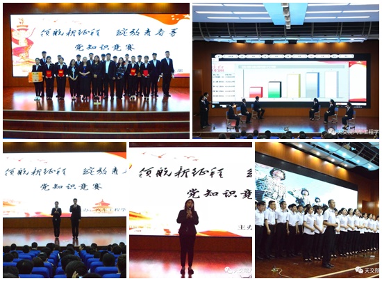 为深入贯彻党的十九大精神,提高大学生的思想觉悟,切实加强党的基层组织建设,增强青年科学发展的新思想,增强道路自信、理论自信、制度自信、文化自信,丰富同学们的校园文化生活,激励同学们的爱国热情, 5月3日汽车工程学院在学术报告厅举办了以“领航新征程,绽放青春梦”为主题的党知识竞赛活动。学院党委工作部胡月梅部长、思想政治教育部刘春媚部长、汽车工程学院党支部齐睿文书记、学工办全体辅导员老师及各团支部学生代表200余人参加了活动。